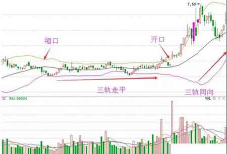 当我们做股票时,我们经常用趋势和冲击来描述当前的市场趋势。如果我们用BOLL来描述这种情况,那么当市场收缩和持平时,市场将会陷入休克,当市场开盘和走向与三条轨道相同的方向时,市场将进入趋势。每个人都知道股票市场总是起伏不定。当BOLL开口的时候,市场会重新整理它。这叫做收缩。另外两种状态的决定取决于布林的中间立场。如果中间轨道成为一个有效的支撑和阻力位置,市场将很容易继续。然而,当中轨不能发挥有效作用时,价格将围绕这条线来回波动,直到持平。